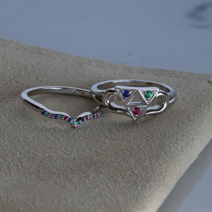 Lab-Created Synthetic Ruby, Sapphire, and Emerald accent stones